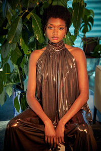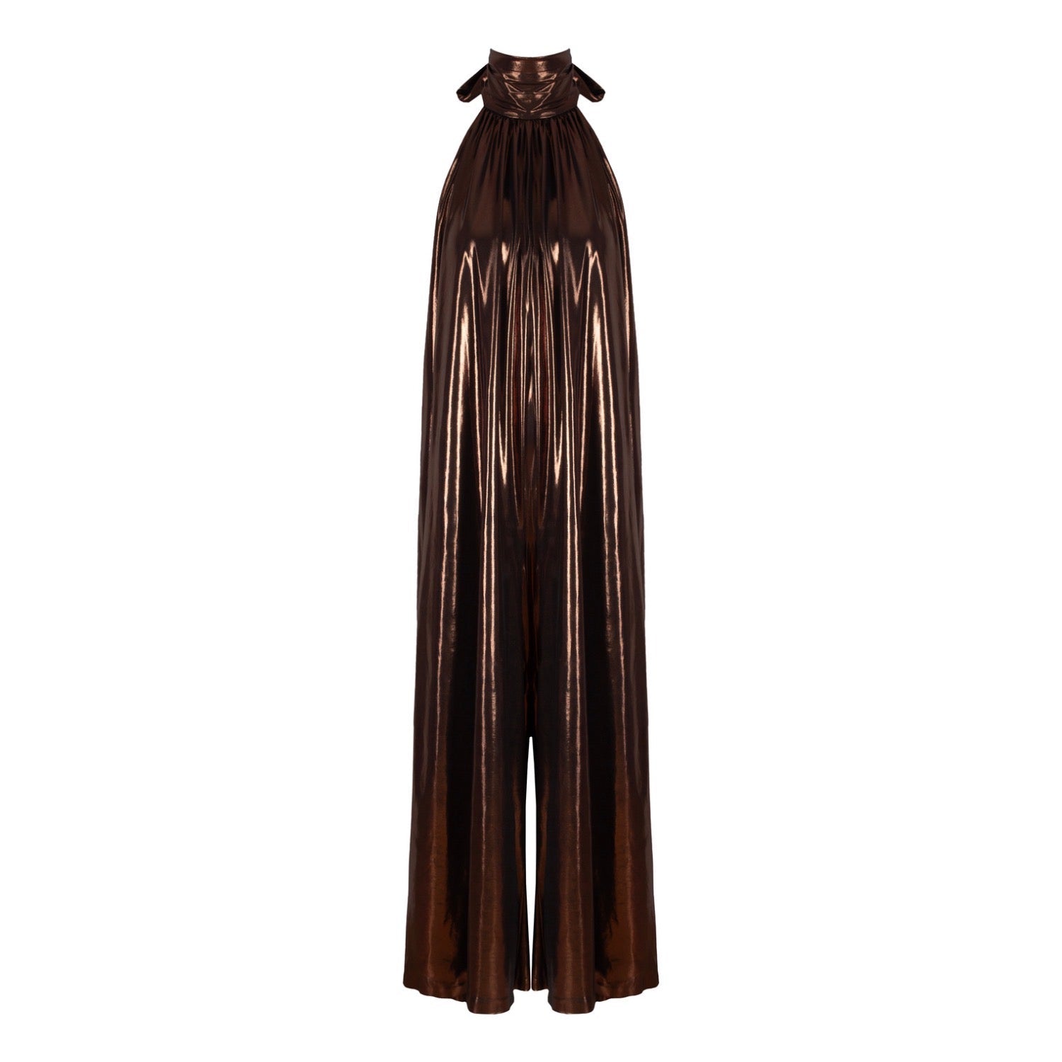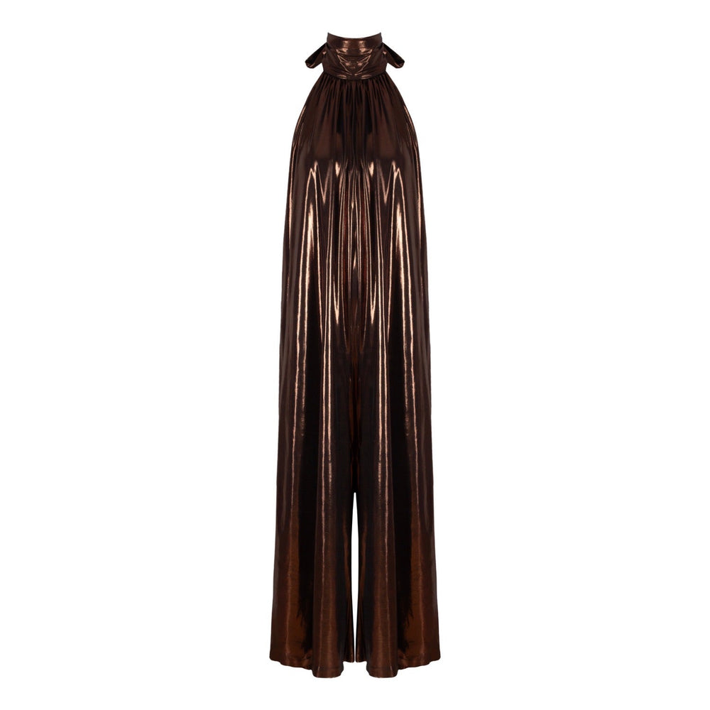 Bronze Metallic Wide-Leg Halter Neck Jumpsuit