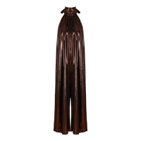 Bronze Metallic Wide Leg Halter Neck Jumpsuit
