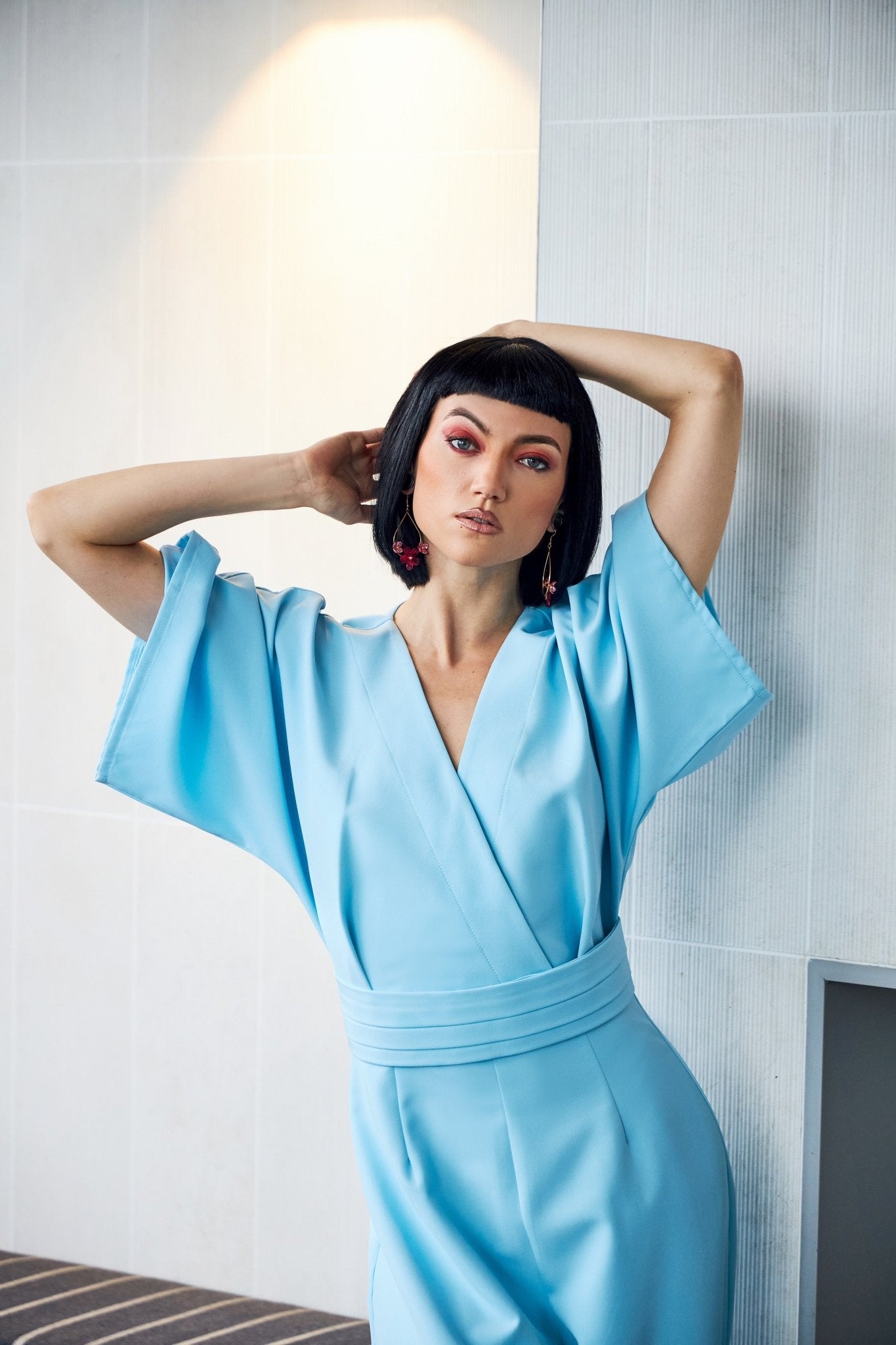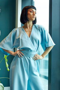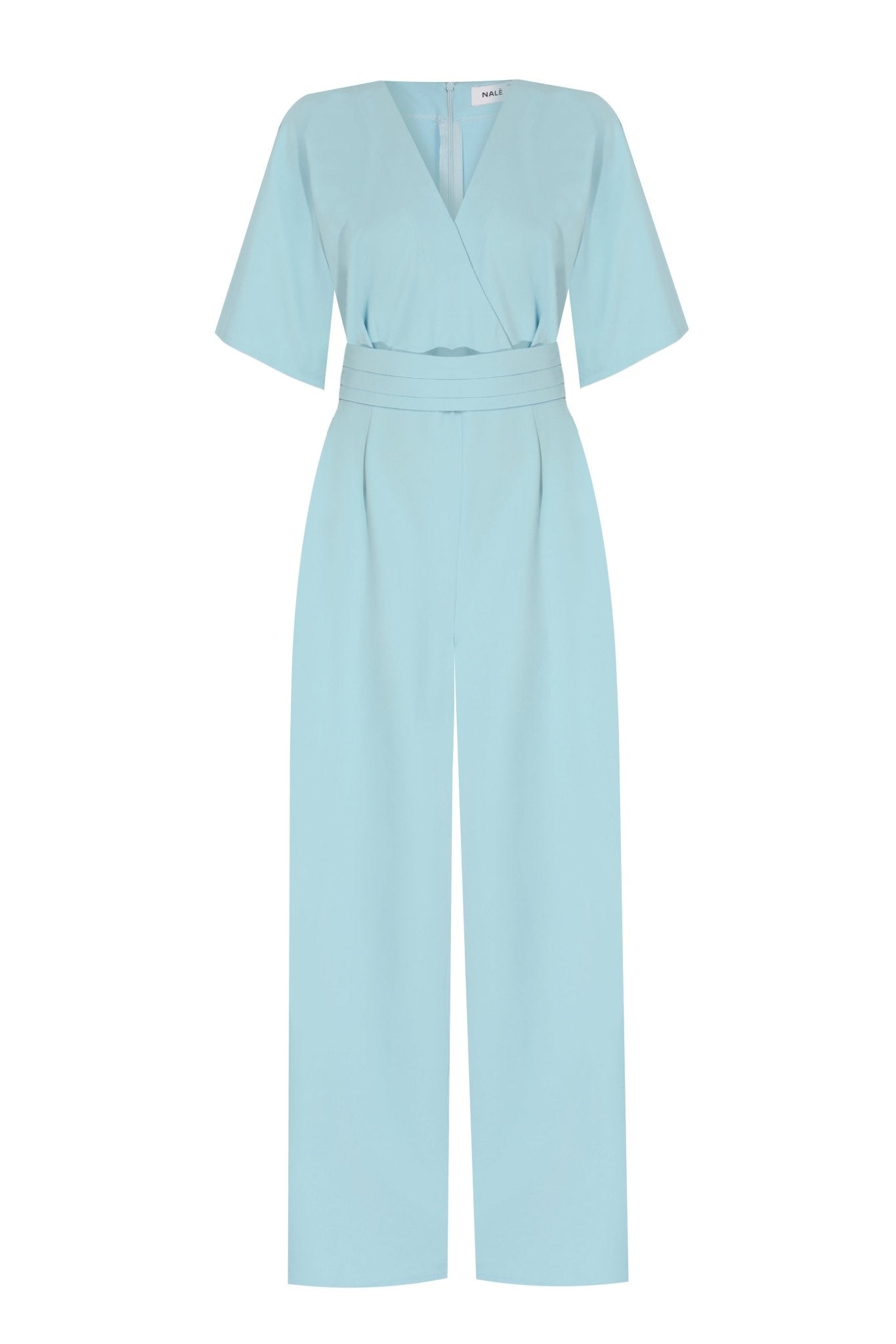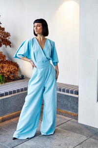Envelope V-Neck Wide Leg Jumpsuit - Blue