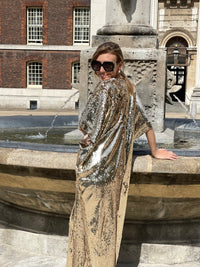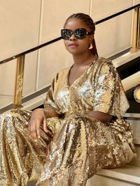 Turn heads and eyes with this luxurious gold sequin jumpsuit