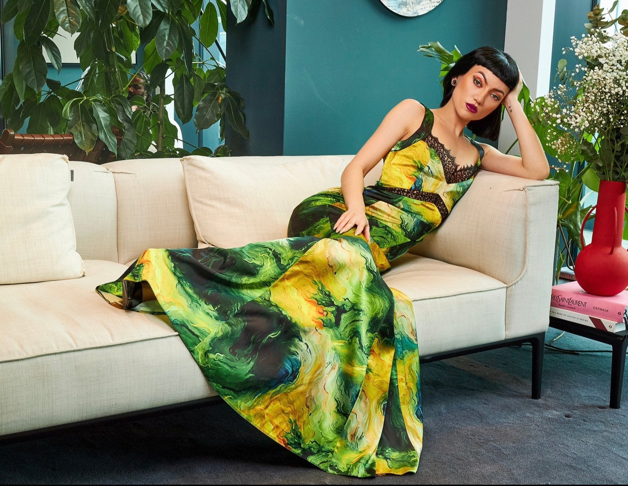 Designed for elegant dinners, garden parties, or special celebrations, this dress pairs beautifully with minimalist accessories and strappy heels for a polished look.