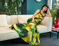 • Vibrant Print Design: A bold mix of green, yellow, and abstract patterns for a striking visual effect.