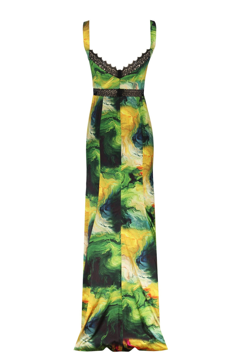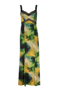 Make a bold statement with the Green Lace Insert Printed Maxi Dress, a captivating blend of vibrant design and elegant details. Featuring a nature-inspired print and delicate lace inserts, this dress exudes sophistication and charm, perfect for standout moments.