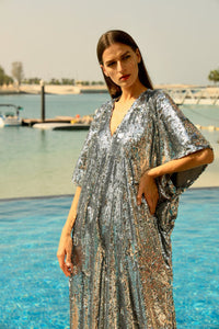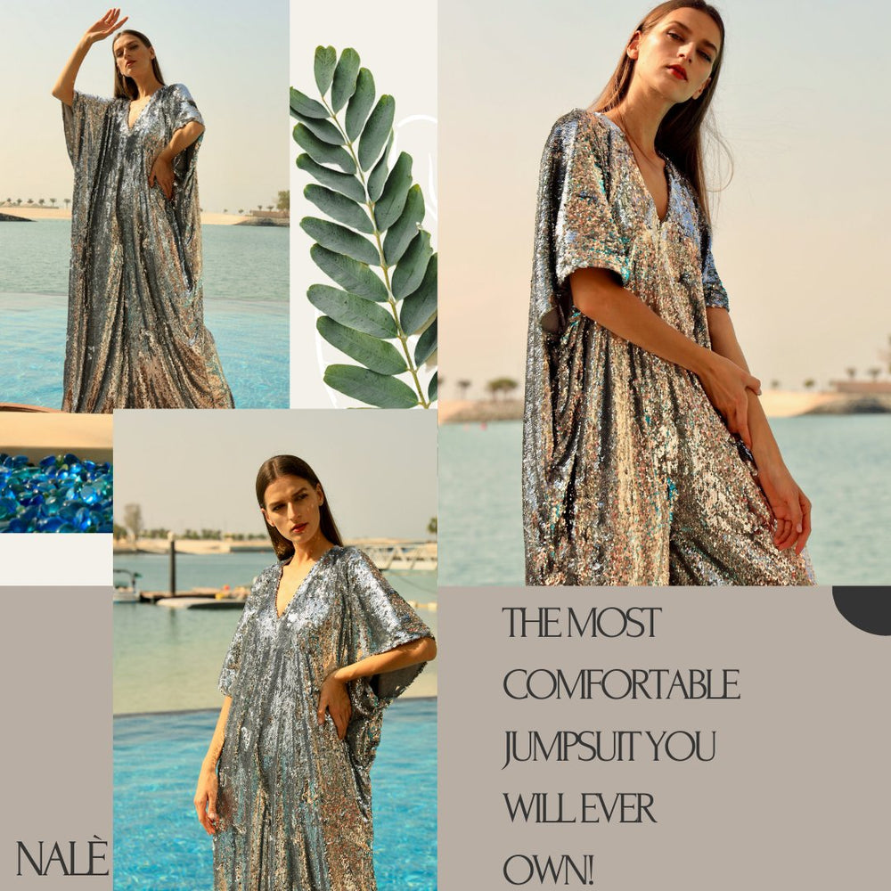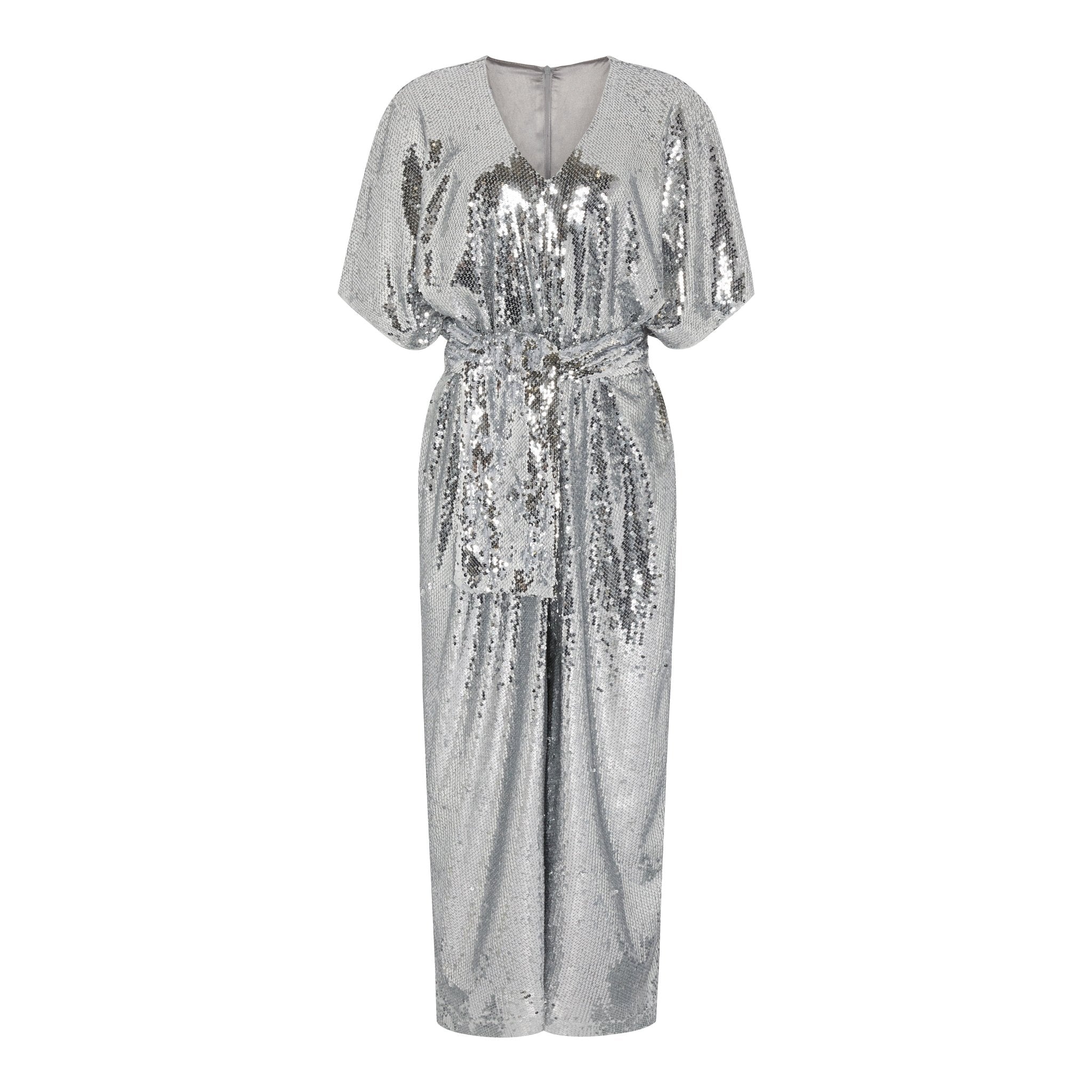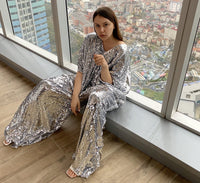 Wide Leg Sequin Palazzo Jumpsuit - Silver