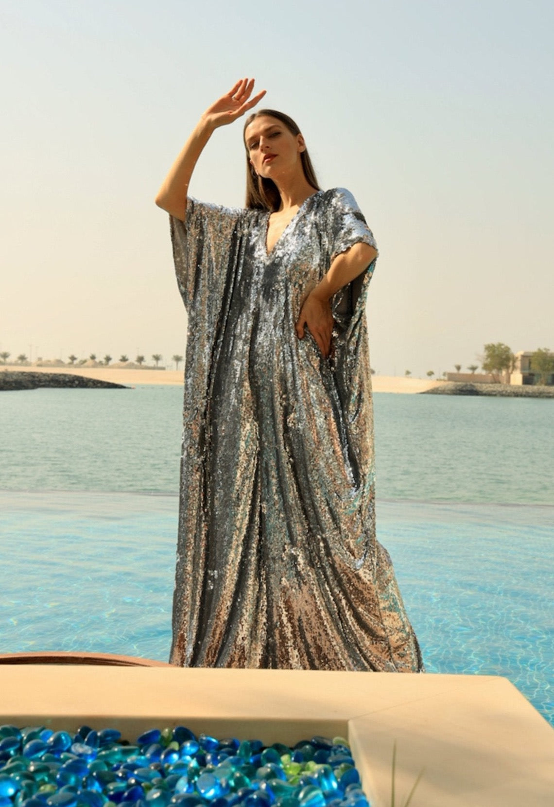 This Silver Wide Leg Sequin Palazzo Jumpsuit is designed to draw attention with its eye-catching sparkle, while providing a comfortable fit due to the combination of its sequin fabric and silk lining. Additionally, pockets on both sides and a detachable belt offer a personalized, fitted look.